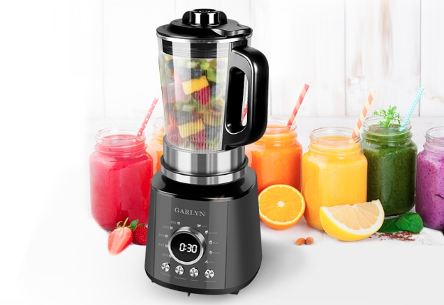 Если кто еще нее в курсе - сейчас делают блендеры с вакуумной технологией, и вот Гарлин тоже сделали классный вместительный блендер. Он как обычный блендер, но перед измельчением откачивает воздух из кувшина, и в итоге воздух в процессе измельчения вообще не участвует) и напитки не пенятся, не портятся. Можно потом день хранить в холодильнике готовые смузи.